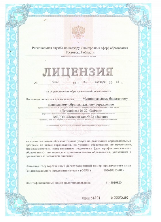 Муниципальное бюджетное дошкольное образовательное учреждение «Детский сад № 22 «Зайчик» (МБДОУ «Детский сад № 22 «Зайчик»)